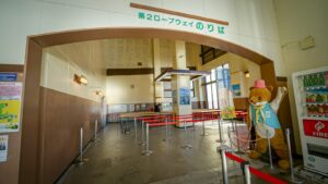 日本初の2階建てゴンドラで、1階も2階も眺めは変わりませんが、早めに乗って前か後ろの窓際の座席の所から見るのがおすすめです。並んでいる先頭から50人が2階、その後が1階に70人案内されるので、60番目ぐらいに並ぶと1階の窓際に陣取れます。ロープウェイの運行は30分に一度ですが、混んでいると臨時便が出ます。冬期も運行しており、冬山登山のトレーニングとして人気があります。2003年まではスキー場もありましたが廃業しました。