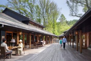 - JR軽井沢駅またはしなの鉄道中軽井沢駅より西武高原バス草津温泉方面「星野温泉トンボの湯」下車後、徒歩5分