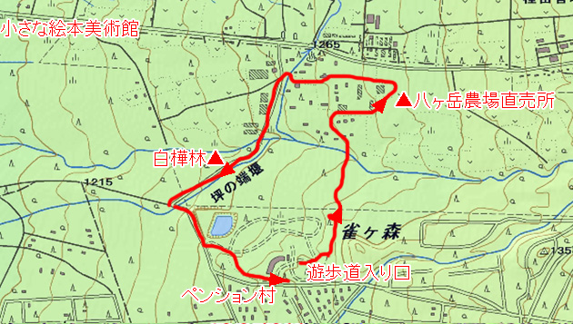 八ヶ岳自然文化園遊歩道入り口~八ヶ岳農場(約20分)