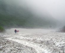 最後の一枚は、しぶとく残っている雪渓です。雪の上で暑い空気が冷されて、霧のようになっていて幻想的でした。