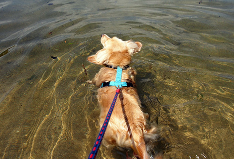 一緒に行った犬が、本能か、綱を付けたまま湖の中に入って「犬かき」で泳ぎ始め、展示作品よりも周りの人達の注目を集めました。