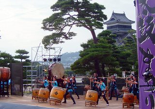 野外で、ライトアップされた松本城をバックに、日本各地から来た演奏グループの和太鼓の豪快な演奏が無料で聴けるオススメのイベントです(その割に市民に知られていませんが)。