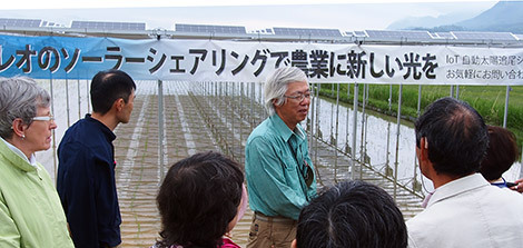 「ソーラーシェアリング」は、農地で作物を作りながら太陽光発電を行うという、地球にも自分にも持続可能なシステム。