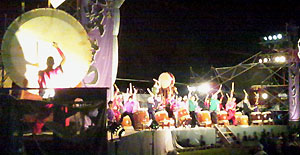 お城の中の庭では、恒例のパワフルな太鼓祭り。