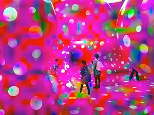 草間彌生ファンなのか、水玉のファッションの人も目に付き、庭では、中国かどこかの撮影のために、草間彌生さんの世界になりきった衣装の女性も。