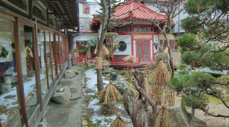 その一つ「割烹松本館」は、大広間が重文級の文化財だと思いますが、昼食の弁当でも5000円ほどする食事を利用しないと普通は見られません。