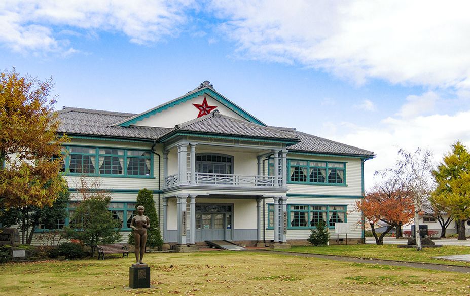 中野市の一本木公園にある「信州中野銅石版画ミュージアム」は、中野小学校の旧校舎を移築して利用している美術館です。中野市ゆかりの彫刻家菊池一雄の銅石版画などの作品を展示しています。