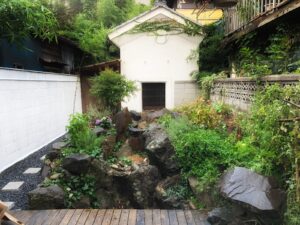石のシャツ等のディスプレイ「自遊石」は、松本で石材店の5代目の主の伊藤博敏さんが、東京芸大卒業後家業の傍ら「石」の持つ新しい可能性を追求して石材店に作った、自由に見学できるギャラリーです。