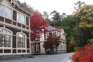 三笠ホテルは、明治時代の1905年に建てられた純西洋風の木造建築で、軽井沢という避暑客の社交場として64年間使用されました。途中、終戦後には進駐軍の施設として使われました。その後 移築・保存され、国の重要文化財に指定され、軽井沢を代表する観光スポットとなっています。