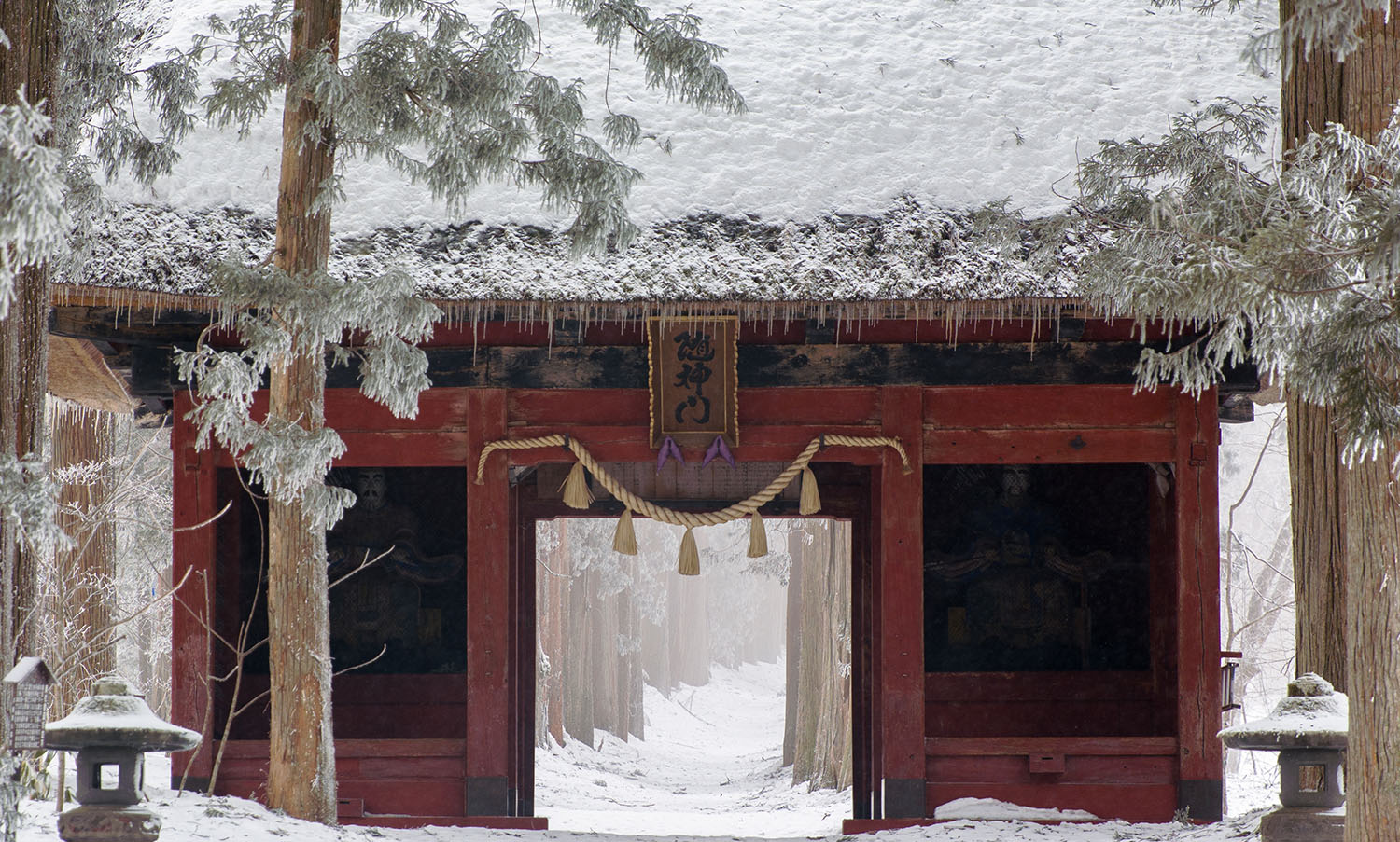 3月末までは冬季閉鎖中なのでバスは中社までで、奥社への杉並木も途中までしか行けなかった(雪崩の危険がある為)