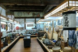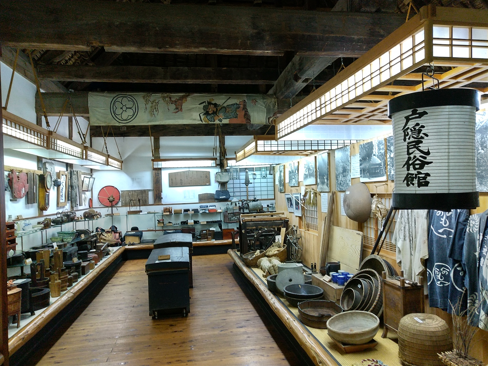 戸隠民俗資料館は、江戸中期の建物に、特産民芸品の竹細工の他、時代劇に出てくるような古い物品が集められて展示されていて、見応えがあります。