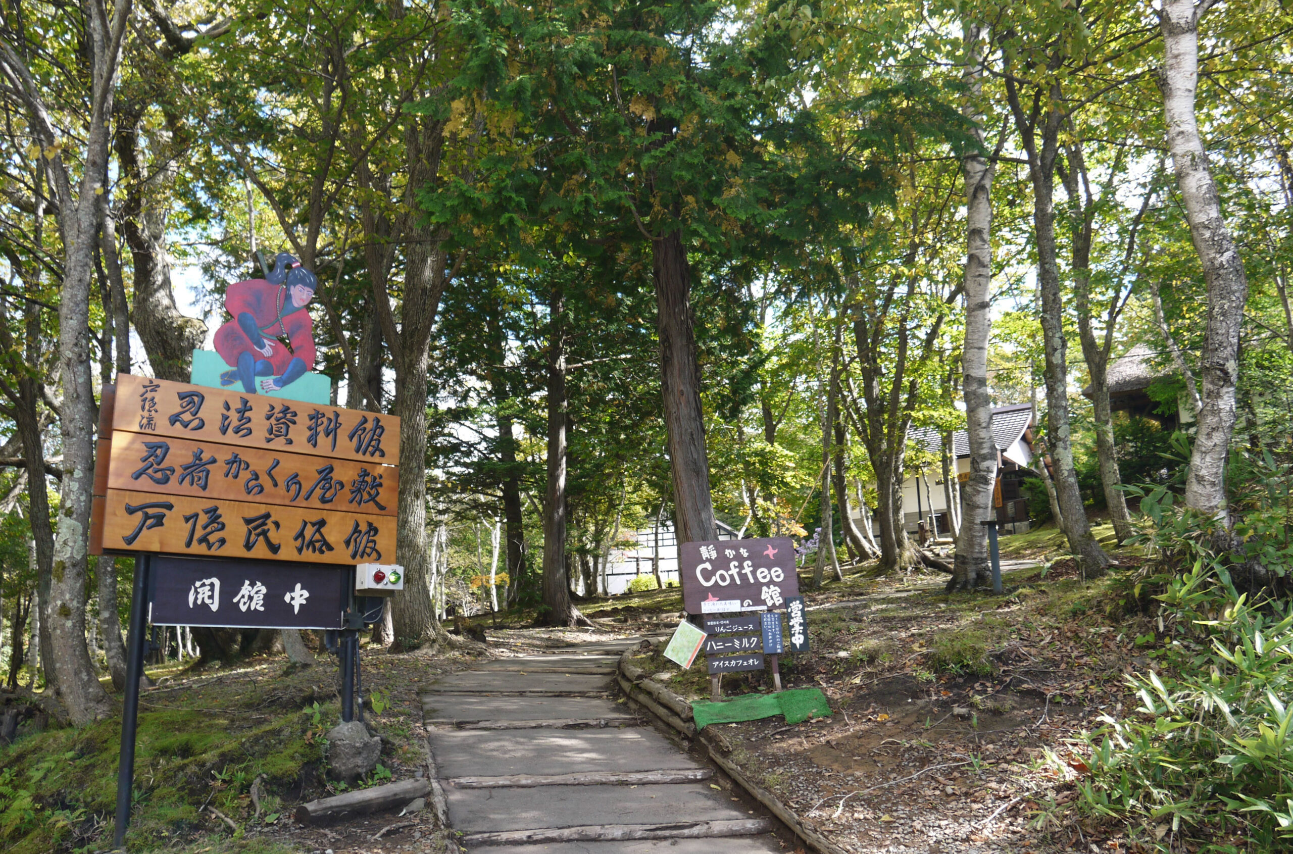 戸隠神社奥社入り口から少し北に行った右側に、戸隠忍者の施設の戸隠流忍法資料館と忍者からくり屋敷、そして民俗資料館の戸隠民俗館がセットになった場所があります。