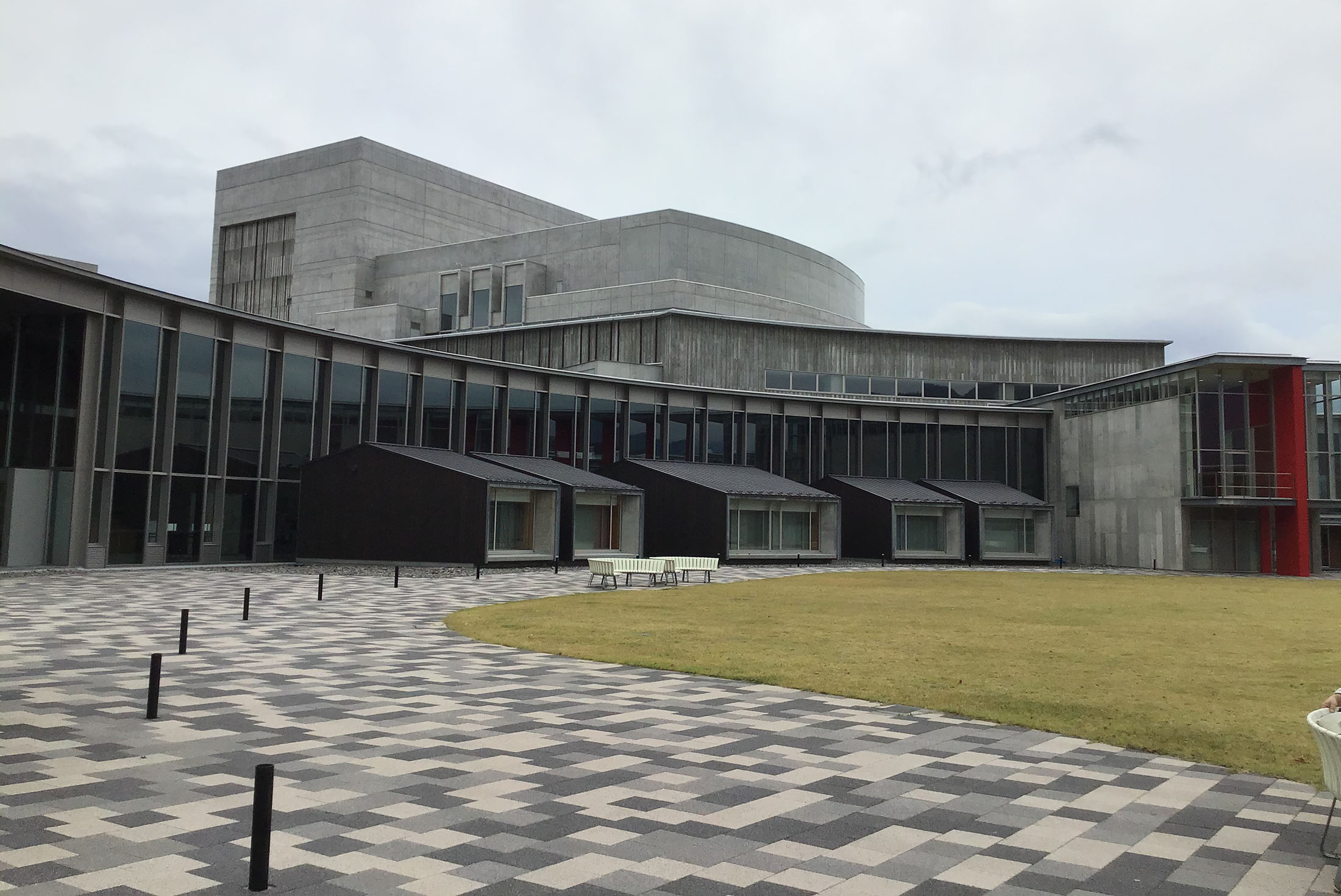 大ホール(写真提供:上田市)上田市交流文化芸術センターは、上田駅の近く、工場の跡地に2014年に新しく建設された多目的ホールで、年間を通じて様々なコンサートが催されます。隣接する上田市立美術館・芝生広場と共に「サントミューゼ」という愛称が市民の公募で付けられています。「サント」は、かつて上田が日本の養蚕の中心地だったことを表す「蚕都」を元にしています。