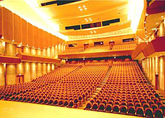 大ホール内装には木が多く用いられており、客席の傾斜が大きいので、後ろの席でも舞台がよく見えます。中ホールは音響を重視した石垣のホールです。