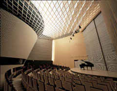 ガラスが多用された透明感あふれる建物には、音楽・演劇・展示・パフォーマンスなどさまざまに利用できるマルチホールと、室内楽の響きの美しさに配慮したコンサートホールがあり、どちらも妥協のない優れたホールとして設計されています。