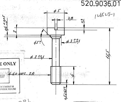 ・520-9036-01・520-9055-01 :金属ネジ 単位:mm 年間発注予定数 190,000個 現在価格(フランスの会社):22セント/個(日本円17.64円).