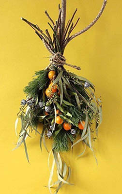 その他、お正月飾りになる森の素材のスワッグとサシェの販売(スワッグ=ドイツ語で植物由来の壁飾り、サシェ=香り袋なんだと、初めて知りました)や、
