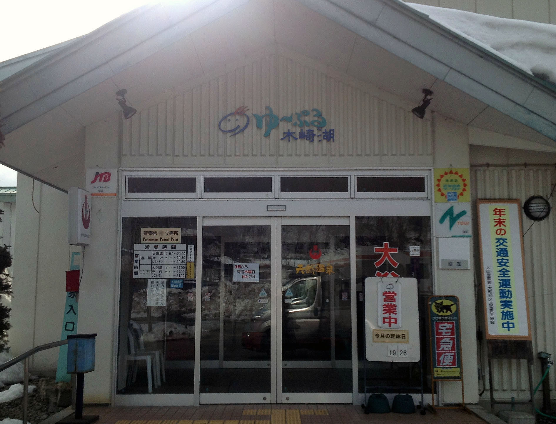 その中で、国道から見える大きな公営の日帰り温泉施設が「ゆーぷる木崎湖」です。広い温泉とレストラン・宴会場、別棟のプールと休憩室があり、地元の人で賑わいます。