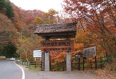 滝の湯入り口長野市の東に位置する高山村には、松川沿いの渓谷に温泉がいくつかあり、信州高山温泉郷と呼ばれています。全国的にはそれほど知られていませんが、松川渓谷の紅葉は信州一美しいともいわれます。