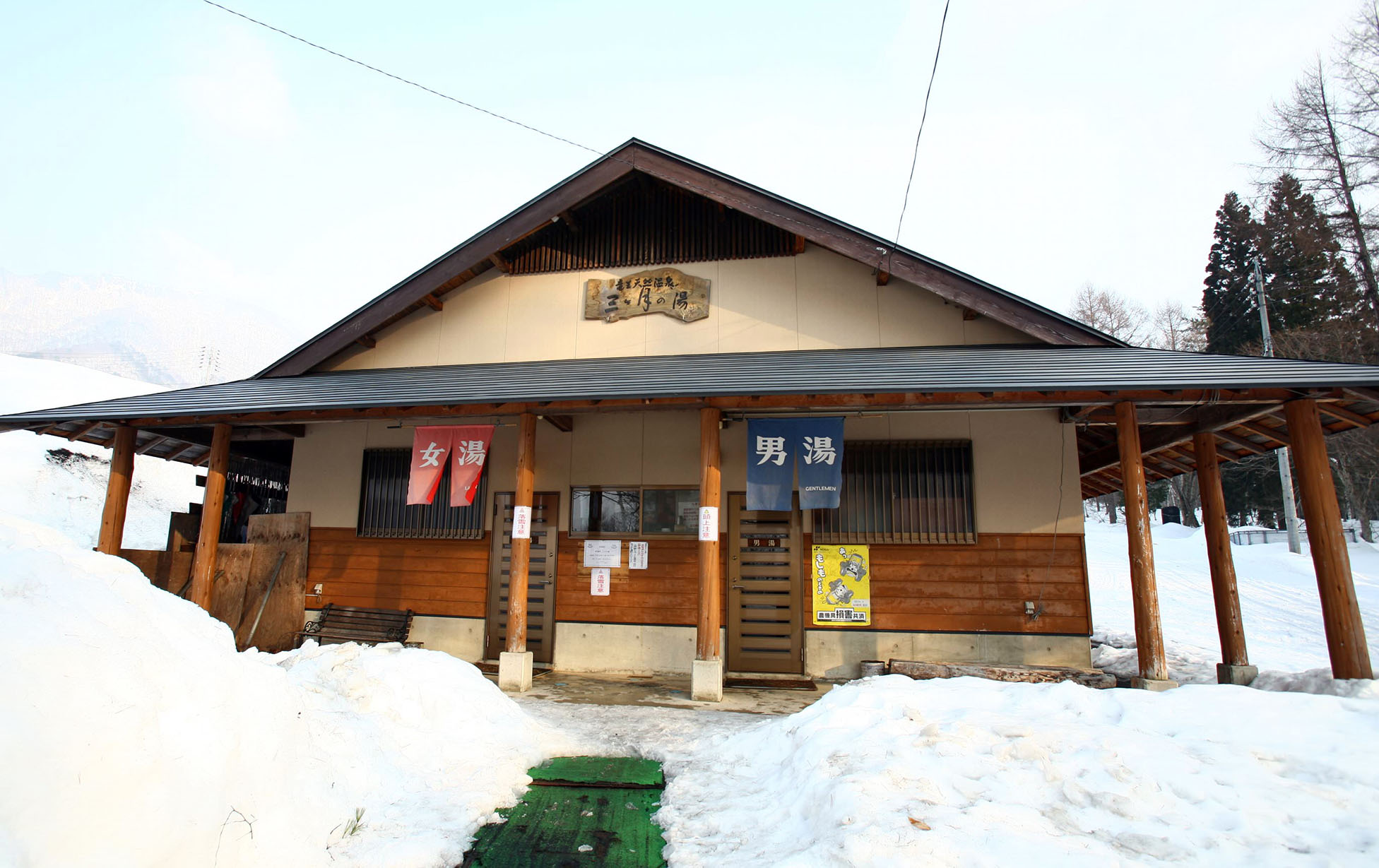 三ヶ月の湯は、北志賀竜王スキーパーク内の竜王パークホテル横にできた新しい日帰り専用の温泉施設です。スキーシーズンは、スキーやスノーボードを履いたまま脇まで来て入浴できます。湯船が大きいのが魅力です。