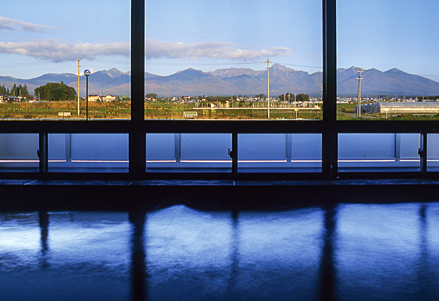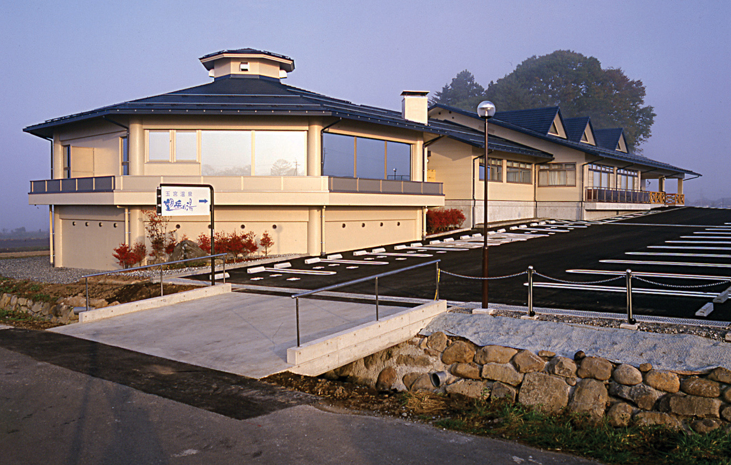 玉宮温泉「望岳の湯」は、国道20号から北、原村に近い八ヶ岳山麓の田んぼの中に2003年にオープンした日帰り温泉施設です。ここの特徴は、横長の浴室全体にガラス窓があり、「望岳の湯」という名前のとおり、東の八ヶ岳か、西の南・北アルプスの大展望が望めることです。