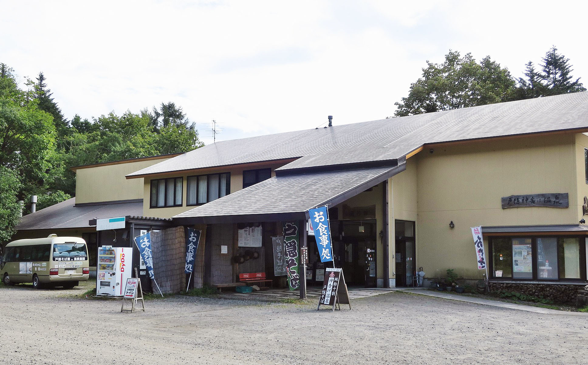 湯行館の温泉は、露天風呂はなく、観光客が多く温泉マニア向きではありませんが、浴室はガラス張りで林や野鳥を見ながら入浴できます。休憩スペースも大きく、施設の中には温泉の他に、ソバの食堂があり、みやげ物も売っています。風呂上がりに名高い戸隠の霧下ソバを食べるのもいいでしょう。