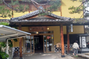 日帰り入浴のできる施設もたくさんあります。新戸倉温泉の千曲川の東の堤防道路(下に落ちそうで怖い!)から下った所にある「万葉超音波温泉」は、高温の源泉をそのまま使う高温の湯船と、井戸水を加えた適温・ぬるめの湯船もあり、人気です。特に朝風呂ファンが多く、何と朝4時の暗い時間からやっています。最近無料の足湯もでき、こちらも掛け流しです。「超音波温泉」の一見怪しげな名前は、HPに解説があるように、昭和20年代に今のジャグジーのような効能を見つけたことに由来しています。