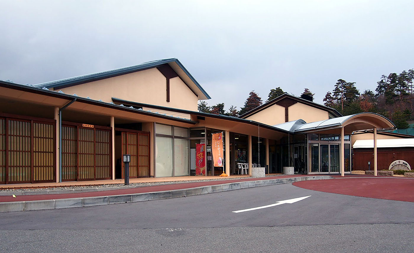 びんぐし湯さん館内の大広間では、坂城町特産のかわいい形の辛味大根「ねずみ大根」の絞り汁を使った「おしぼりうどん」が食べられます。物産展コーナーで、10~12月にねずみ大根、それ以外の季節では漬け物などの加工品を買うことができます。