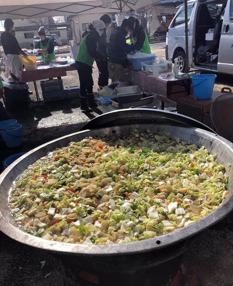 「みらい」さんは、神戸の震災以来全国各地の被災地に通って、プロの美味しい料理を提供しておられますが、今回は地元が被災したため、毎週通われています。大晦日にも行かれるそうです。