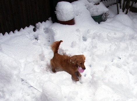 雪の中に埋めたボールを探して掘り出すgame(ダックスフンドにとってはjob?)で、雪に埋もれたスルメイカのようになりながら楽しみました。
