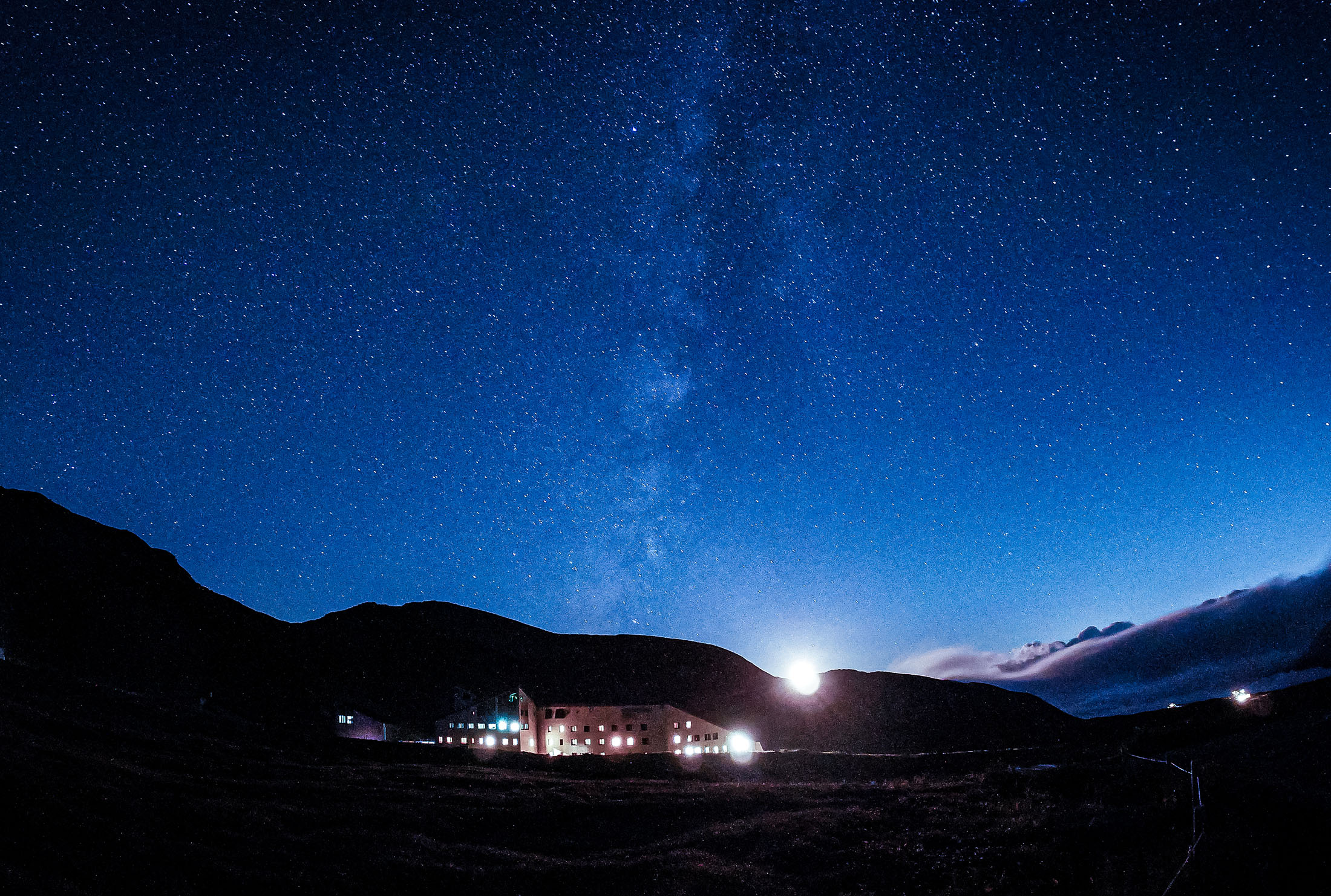 立山黒部アルペンルートの最高地点2,450mにある日本最高所にあるホテル「ホテル立山」か温泉宿「みくりが池温泉」に宿泊すると、ゆっくり星が見られます。ホテル立山では、月に1~2度、ホテルのスタッフが解説する「星空観察会」も行われます。
