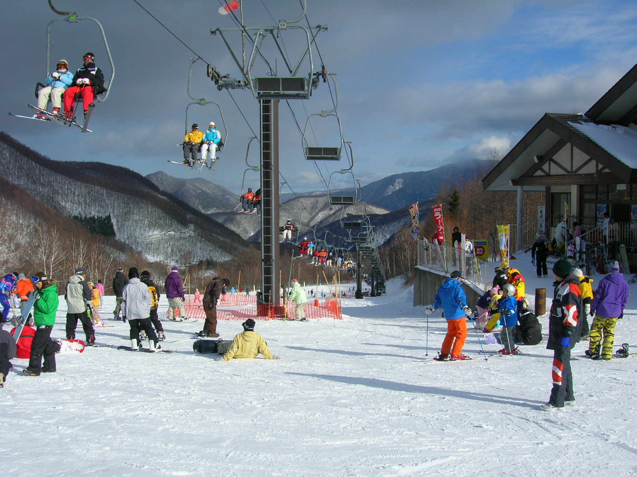 標高が高くパウダースノーが売りで、2010年に改名し、ゲレンデ外のオフピステもルールを守れば滑走可能。長野県内のスキー場では関西から比較的近いので、関西弁が聞こえます。子供のリフト券が安価。