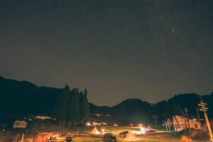 スキー場がグリーンシーズンに全面芝生のキャンプ場になります。天気が良く空が澄んだ季節・日には綺麗な星空が見えます。天空のわらび園も併設