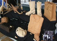 すべて木でできているシャツ、かばん、靴、グローブとか、