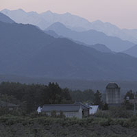連休明けの今日はみごとに晴れましたが、帰り道、白馬連峰がまるで山水画のようなきれいなトーンを見せていたので、車を停めて一枚。