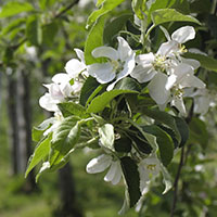 自宅近くのリンゴ畑の花が満開になりました。通勤路ではないので分かりませんが、三郷あたりのリンゴ畑も満開ではないでしょうか。真っ白い花が一面のリンゴの木いっぱいに咲いて、圧倒されます。