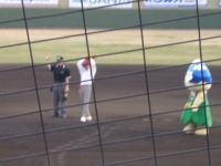 菅谷松本市長の始球式(写真右上)で始まった試合は、いきなり1回表に満塁ホームランを含む9点を取られ、グランセローズには苦しい展開となりました。