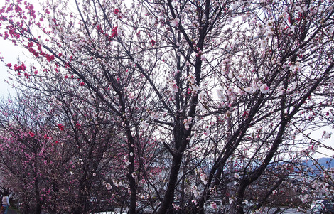 今年は、肌寒い天気が続いたせいで桜もまだ咲いていて、花桃と散り始めた桜が一緒に観られて桃源郷のような美しさを味わえます。