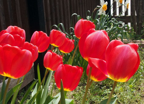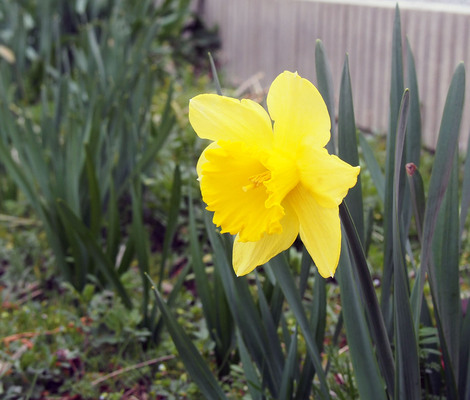 いつも咲くのが遅いうちのアプローチの水仙は、一輪だけ株が開花。