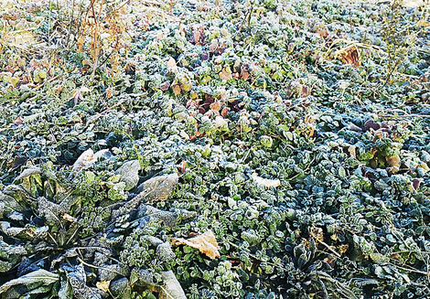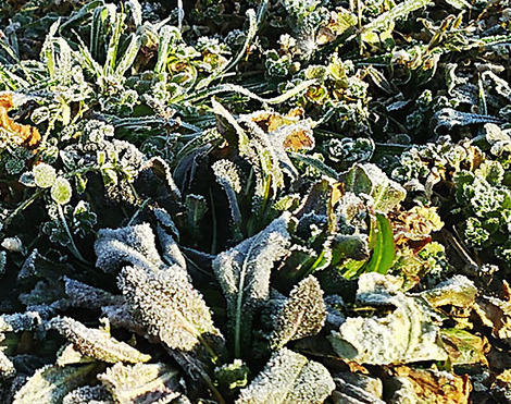 -4.5℃の朝。今年一番の冷え込みで、まだ緑色の雑草に霜がびっしりついて、それが朝日できらきらと輝いてました。