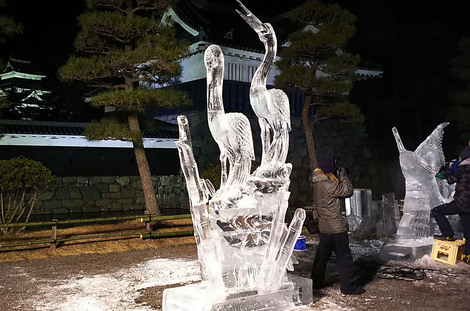 この週末は、冬の信州らしいイベント松本城氷彫フェスティバル。