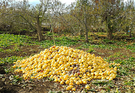 あちこちに山積みにされた冠水して廃棄するリンゴ達を見ながら、今回も樹の周りの泥の掻き出しでした。