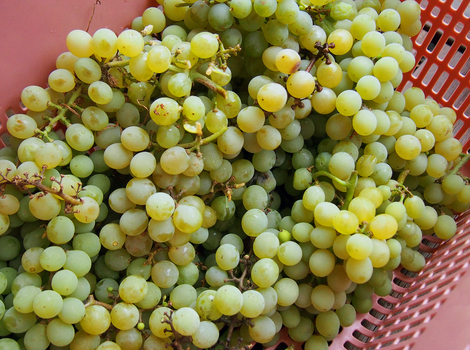 台風前に収穫した家のブドウ棚のナイアガラ。