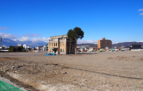 東松本のカタクラモールが取り壊された跡地に一つ残された製糸工場の建物。