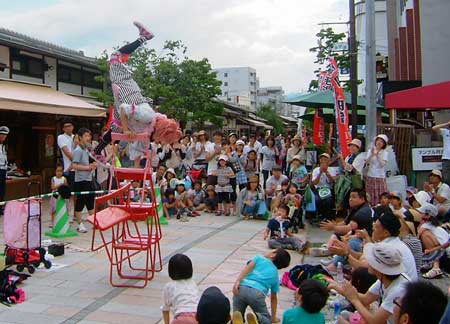 松本の街中のあちこちで同時にやっていましたが、上の写真の縄手通りが大道芸に一番似合います。