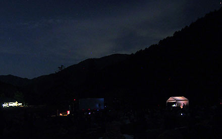 梅雨時の曇り空で、星は惑星とスピカしか見えませんでしたが、ステージでの映像・トーク・ショー・星の解説などを見ながら、だだっ広い草地に座って真っ暗な中で星を見る楽しみを実感しました。