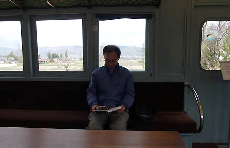 棚にあった「窓際のトットちゃん」の電車の教室の場面を読むと、止まっていても風で風景が動くと電車に乗っている気分になる、と書かれていて、その通り、車窓を見ると旅気分が満喫できます。