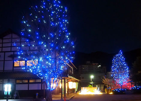 温泉地の集客・再生のための仕事をさせてもらうことが多く、浅間温泉では去年に引き続き、宴会シーズンのキャンペーンをやらせて頂いています。折り込みチラシ・パンフレット・下の写真のイルミネーションに加えて、今年はラッピングバス・ウエブリスティング広告も駆使して、韓国客の少ない冬場の誘客をお手伝いしてます。