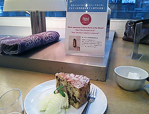 ケーキの写真は、セントレアで入った、海外で人気の日本食料理研究家栗原はるみのお店「ゆとりの空間」です。