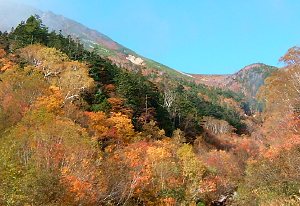長野県内の紅葉の名所では、場所にもよりますが、現在紅葉がピークのところは標高1300~1500mぐらいの高原や渓谷で、1000m~1200mぐらいの場所(黒姫高原・軽井沢各所・角間渓谷・木曽赤沢自然休養林・萱野高原など)は今週末がピーク、500m程度の平野部(小諸市懐古園・別所温泉周辺・松本城・天龍峡など)は11月始めが最盛期となりそうです。